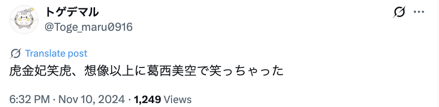 2024年11月7日にFLOW GLOWがデビューすることが発表され、2024年11月9日に虎金妃笑虎の初配信がありました。
