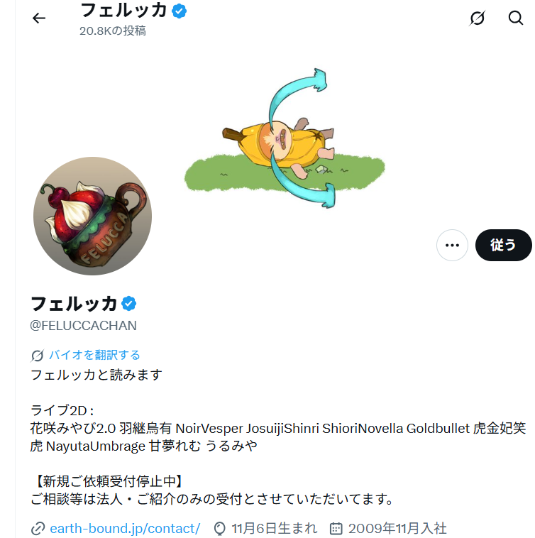 つまり、2Dビジュアル(イラスト)の原案は鉄一先生、Live2Dモデリング(動きや表情の実装)はフェルッカ先生がそれぞれ担当されたということです。