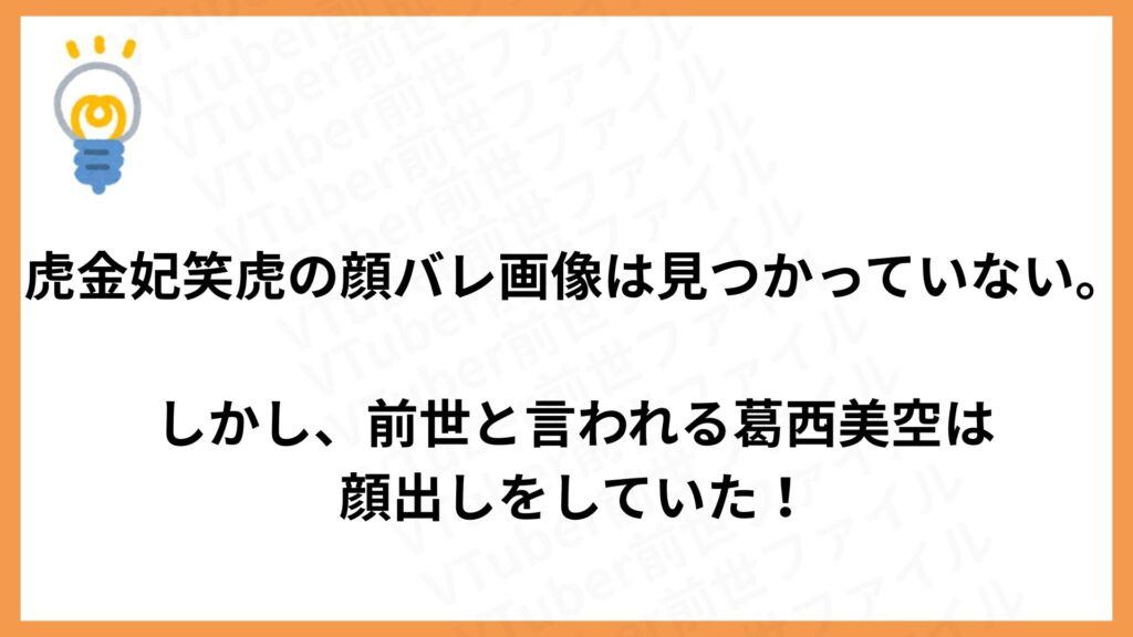 虎金妃笑虎の中の人の顔バレは今のところありませんが、前世でほぼ確だと言われている葛西美空は顔出ししています。
