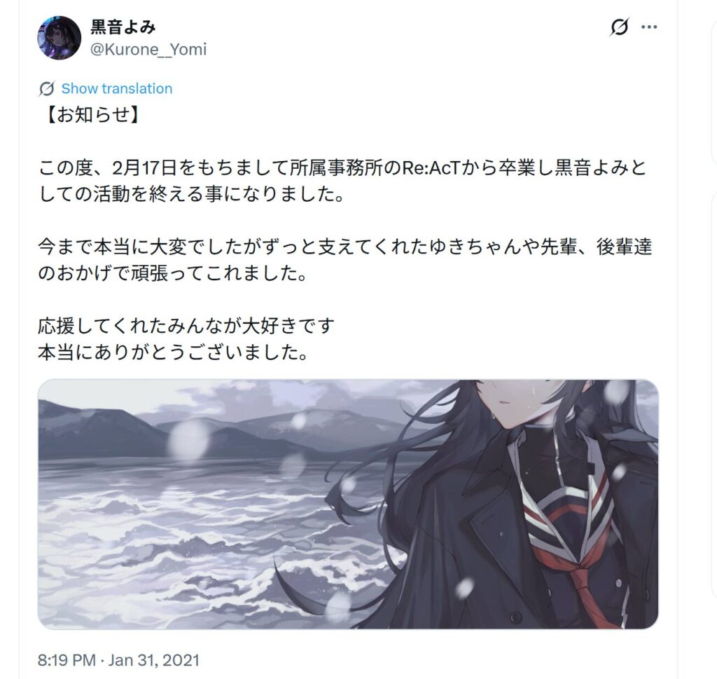 そんなファン思いの黒音よみですが、2021年2月17日で引退を公式発表。