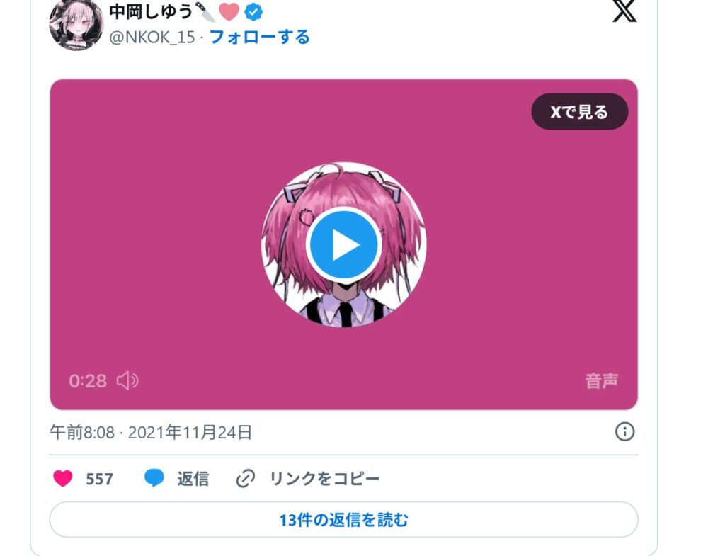 Xの名前が「中岡です。」となっていますが、中岡しゆうは活動名をころころ変えて活動していたみたいなので、この「中岡です。」と言う人物と中岡しゆうは同一人物です。
