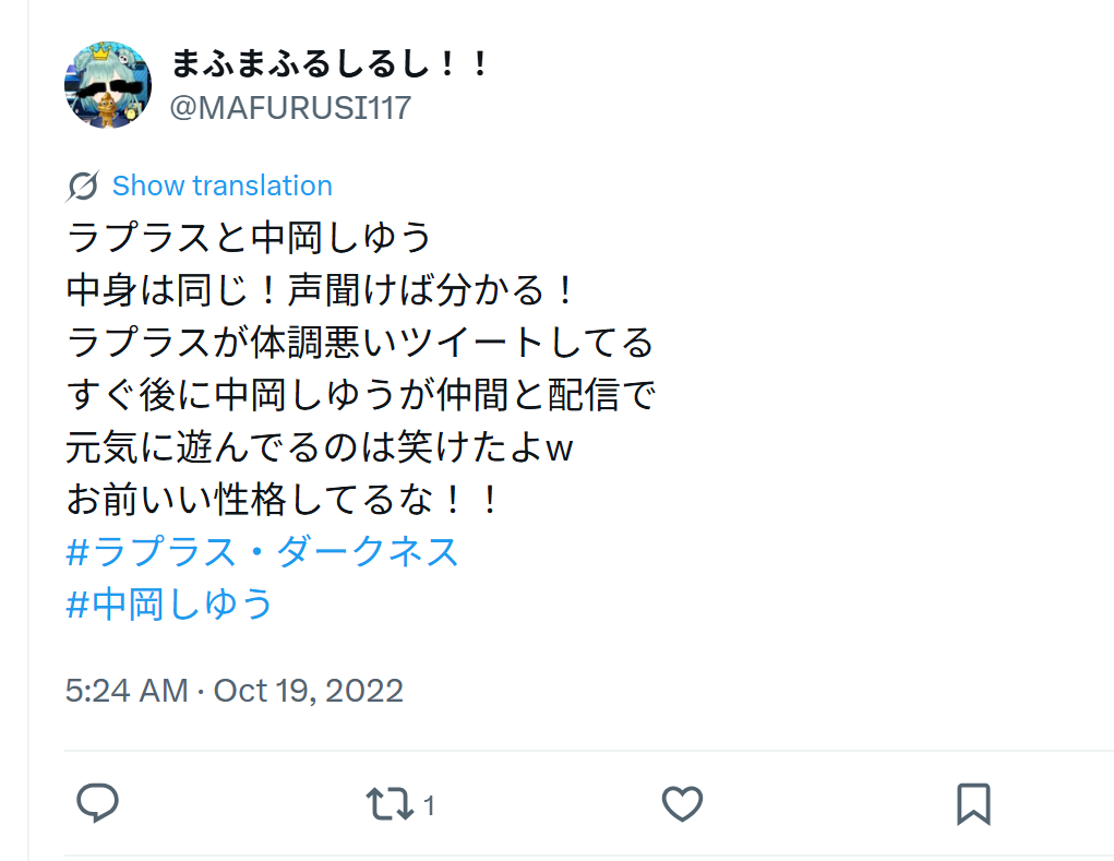 中岡しゆうとラプラス・ダークネスの両者を知る人からも、早くから気づかれているようなコメントがXでは見られました。