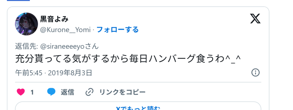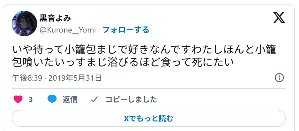 黒音よみも、小籠包が好きなことが分かるXの投稿をしていました。