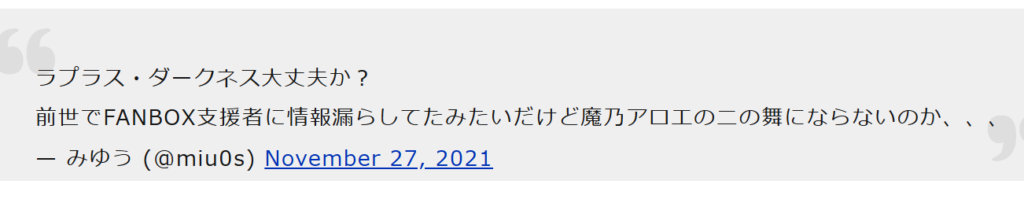 黒音よみは、FANBOXでラプラスダークネスになると公表していたことが視聴者のツイートから判明します↓
