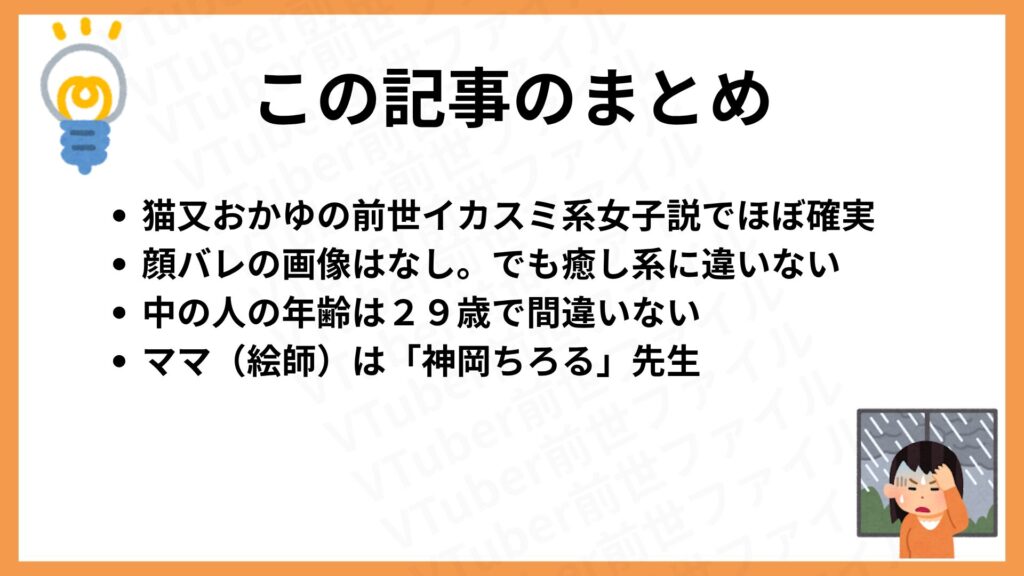 この記事では、猫又おかゆの前世(中の人)、顔バレや年齢について、さまざまな情報を整理しながらわかりやすく解説します!
