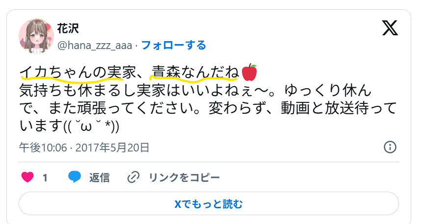 Xでは、フォロワーから「イカちゃんの実家は青森なんだね」というコメントも寄せられていました。