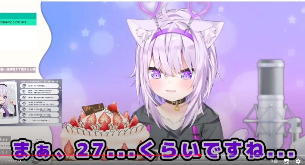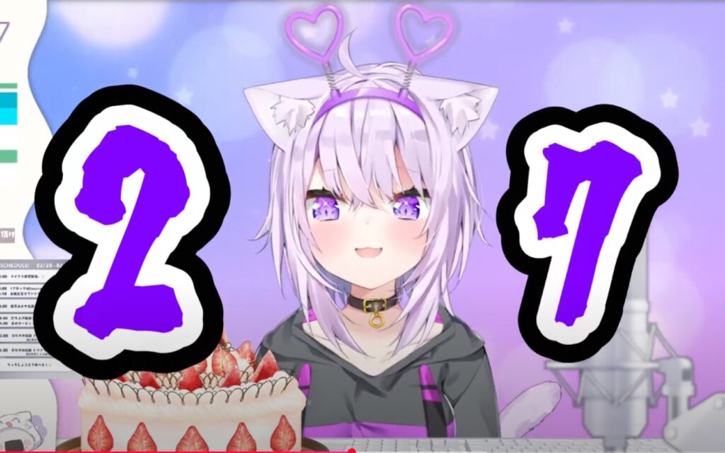 先ほども触れましたが、猫又おかゆは2023年の誕生日ライブ配信で「27歳」と話していました。