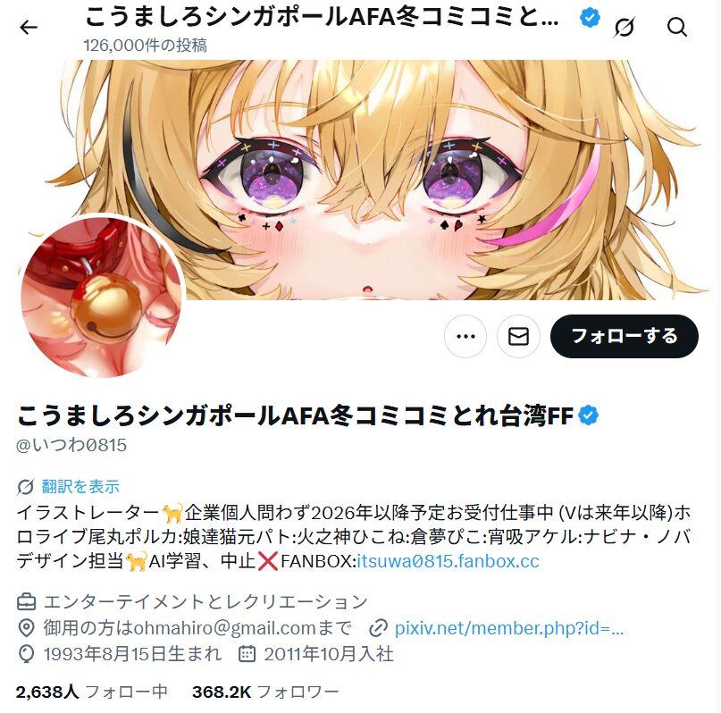 この自称のうち、「アラサー」の部分は本当だと考えられており、毎年誕生日を迎えるたびに「アラサーになった」とツイートしています。