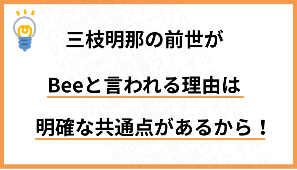 こうした4つの共通点から、ファンの間では三枝明那の前世はBeeだと、確信に近い声が上がっています。