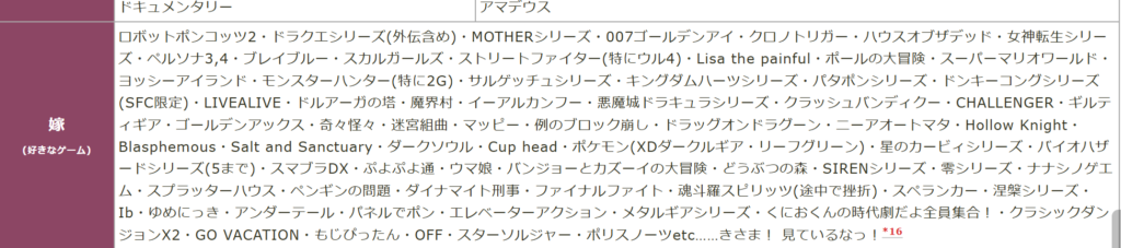 好きなゲームの欄にはかなりの数のゲームが書き込まれており、しかもゲームのことを「嫁」と呼ぶほどに好きなんだそうです。