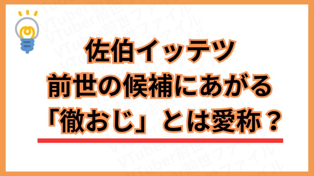 【佐伯イッテツ 前世】で検索するとほぼ必ず上がってくると言っても過言ではない名前ですが、「徹おじ」と言う人物が実際にいるのではなく、様々な理由・根拠によりリスナーからつけられた架空人物のあだ名がこれなんだそうです。