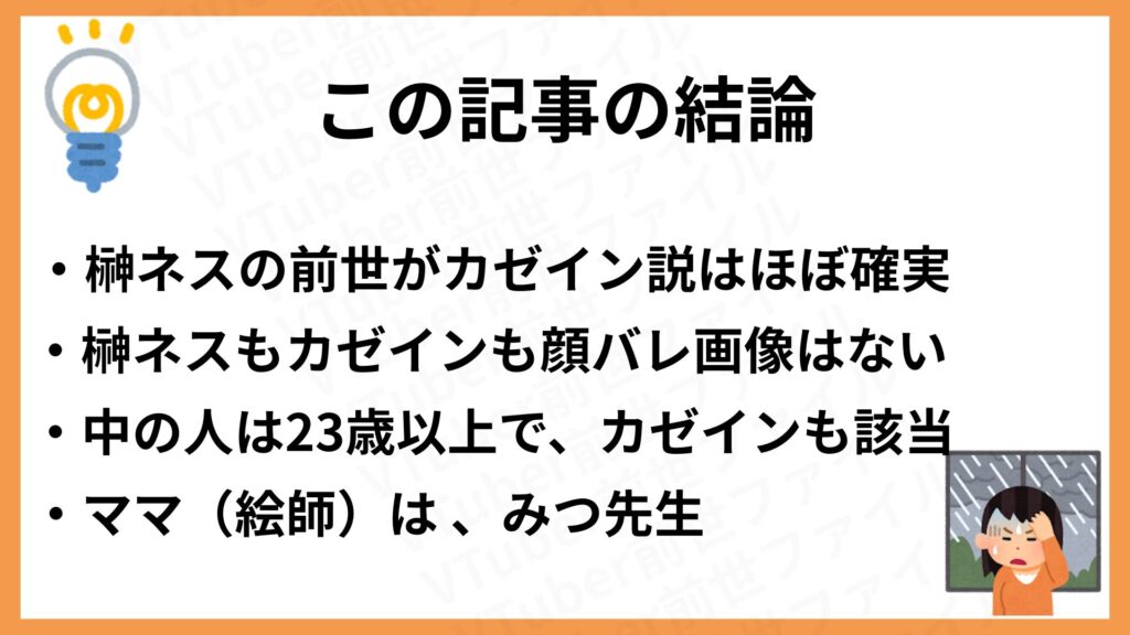 榊ネスも、前世疑惑のあるカゼインも、現在顔バレしていません。