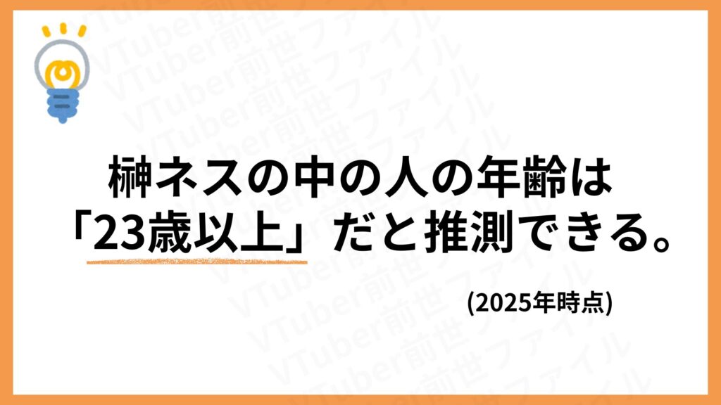 榊ネスの中の人の年齢は23歳以上、疑惑のカゼインは24歳です。(2025年9月時点)