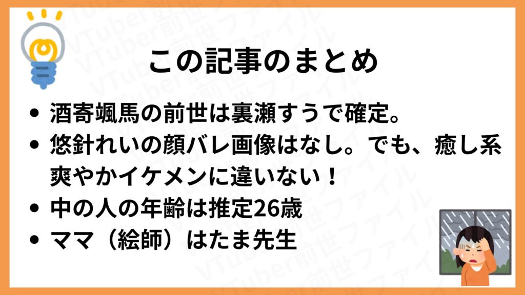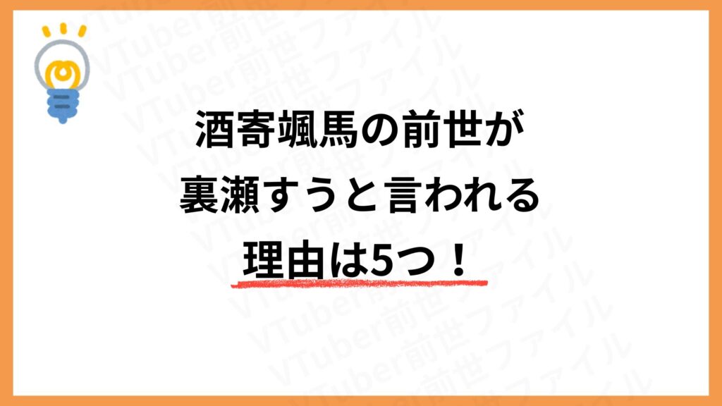 結論から言うと、酒寄颯馬の前世は元VTuber・裏瀬すうの可能性が非常に高いと言われています。