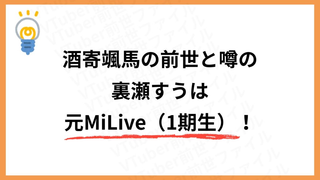 なんと、酒寄颯馬はMiLive(1期生)の裏瀬すう(うらせすう)では?と噂になっているようです。