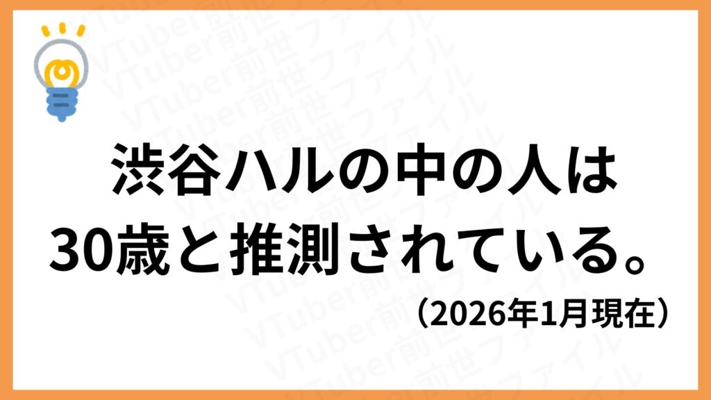渋谷ハルの中の人ですが、年齢は推定30歳ではないかと言われています。