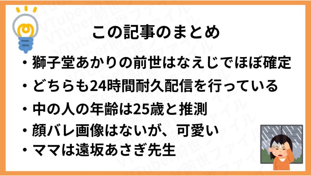 この記事では、獅子堂あかりの前世(中の人)、顔バレや年齢について、さまざまな情報を整理しながらわかりやすく解説します!