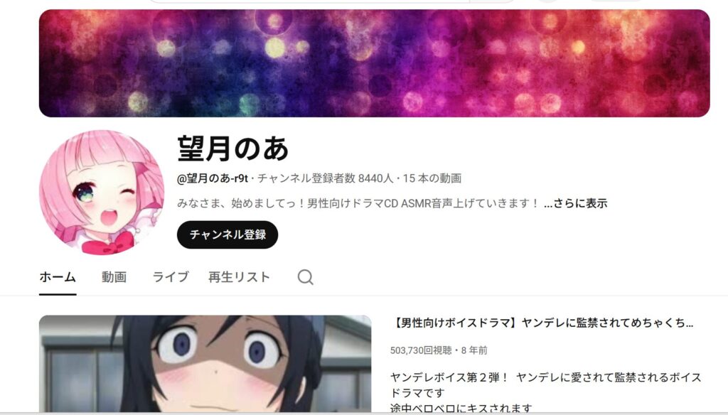 2017年頃からフリーランスの声優として、男性向けのボイスドラマやASMRを中心とした活動をしていました。