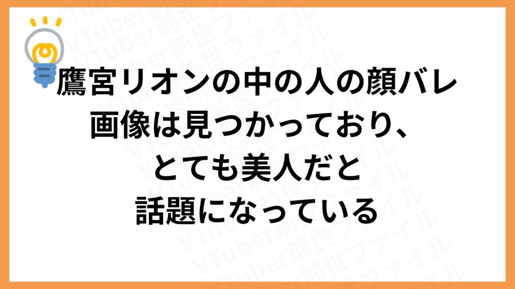 鷹宮リオンの前世だと言われている望月のあさんは、自分のXにて顔写真を投稿しているため、顔バレはしている模様です。
