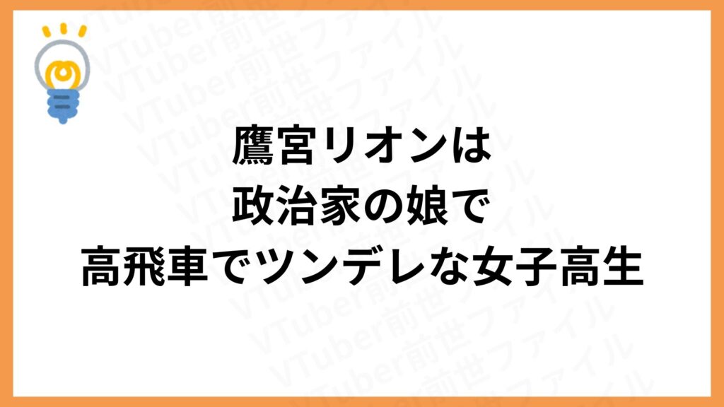 鷹宮リオンは政治家の娘で高飛車でツンデレタイプの女子高生です。