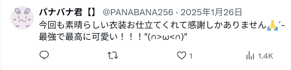 兎咲ミミの新衣装をXに投稿したところ、1万を超える良いねと衣装に関するコメントがたくさんついていました。