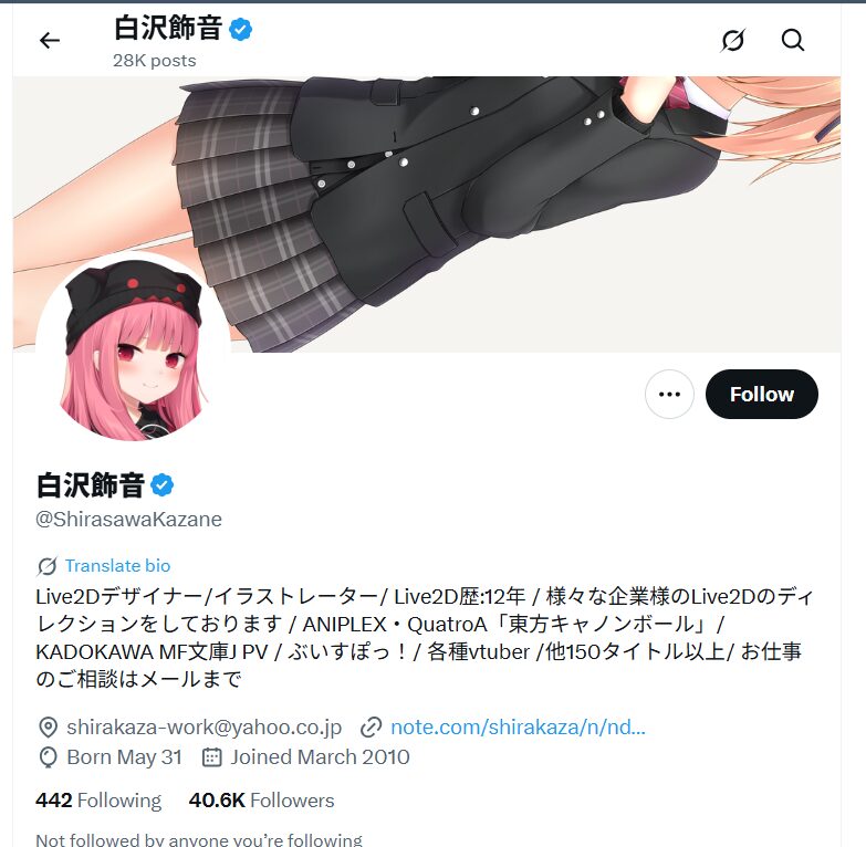グラフィックデザイナー・イラストレーター等として活動されていて、様々なVTuber・グループのLive2D化を行っています。