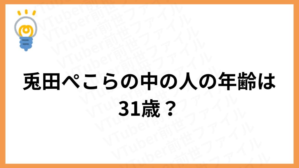 兎田ぺこらの年齢は111歳ですが、中の人の年齢は31歳と推定されています。