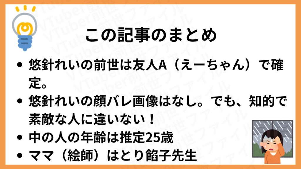 今回の記事では、悠針れいの前世や中の人について徹底解説しました。いかがでしたか?
