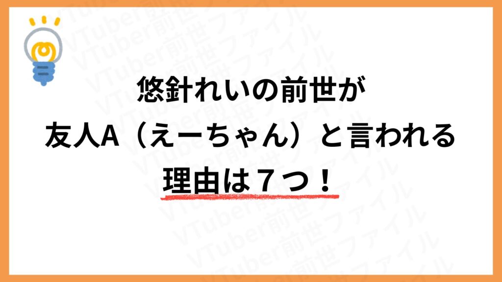 ・悠針れいの前世(中の人)は友人A(えーちゃん)で確定と言われる理由は?